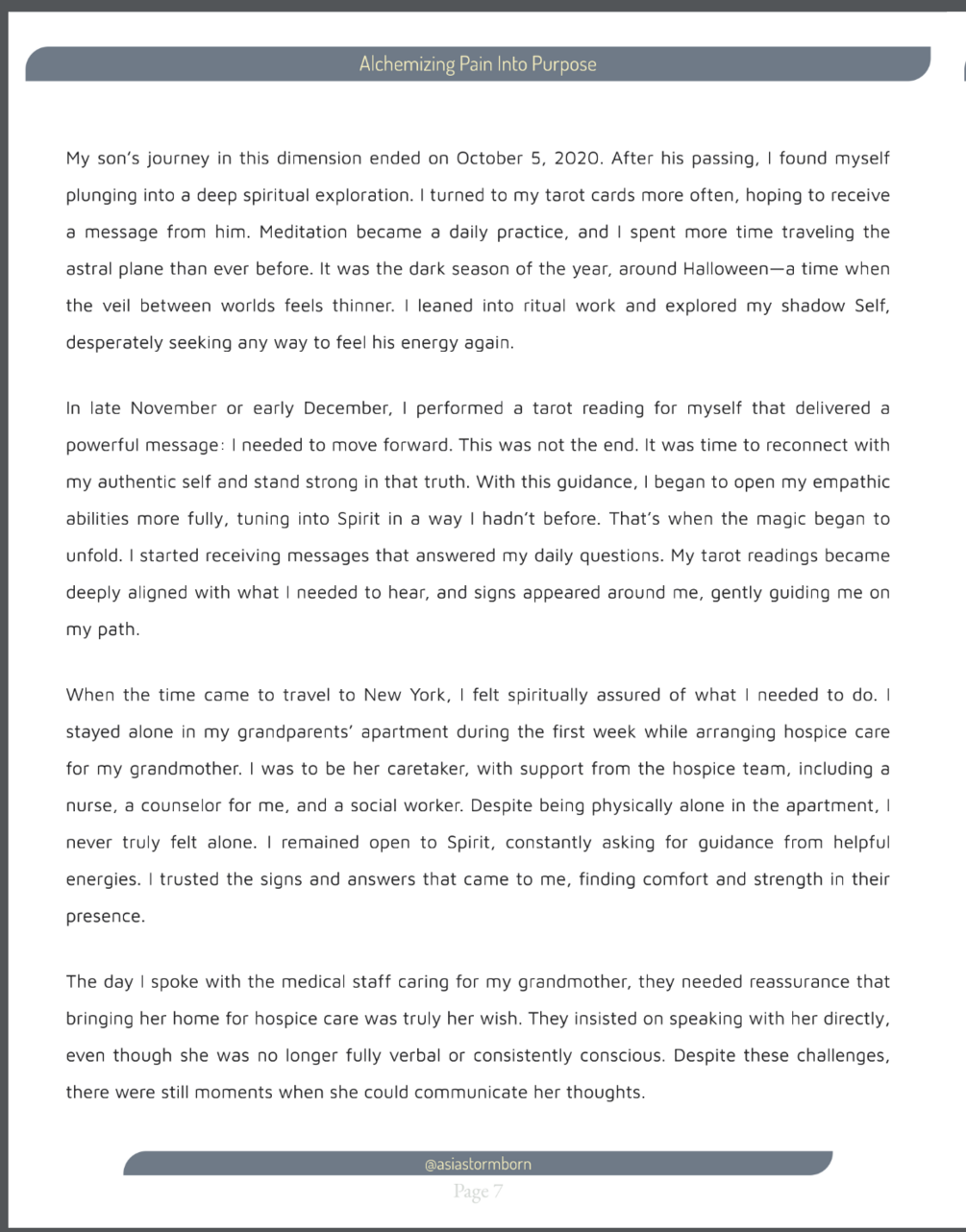 After the devastating loss of my son, I found myself in a place where everything hurt—physically, emotionally, and spiritually. I couldn’t imagine how life could ever feel “normal” again. In the midst of my own grief, I was called to walk alongside my grandmother as her death doula, guiding her through her transition to the afterlife. What began as an unasked-for lesson in death and grief became the foundation for my own healing and transformation.
